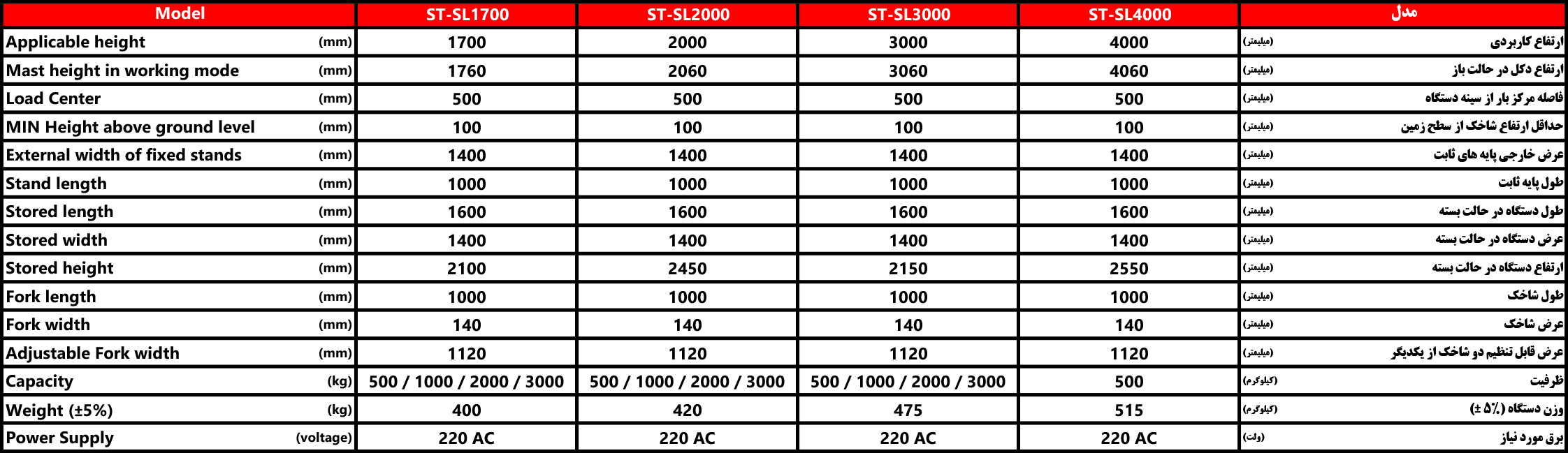 ارتفاع کاربردی تا 4 متر تا ظرفیت 3000 کیلوگرم